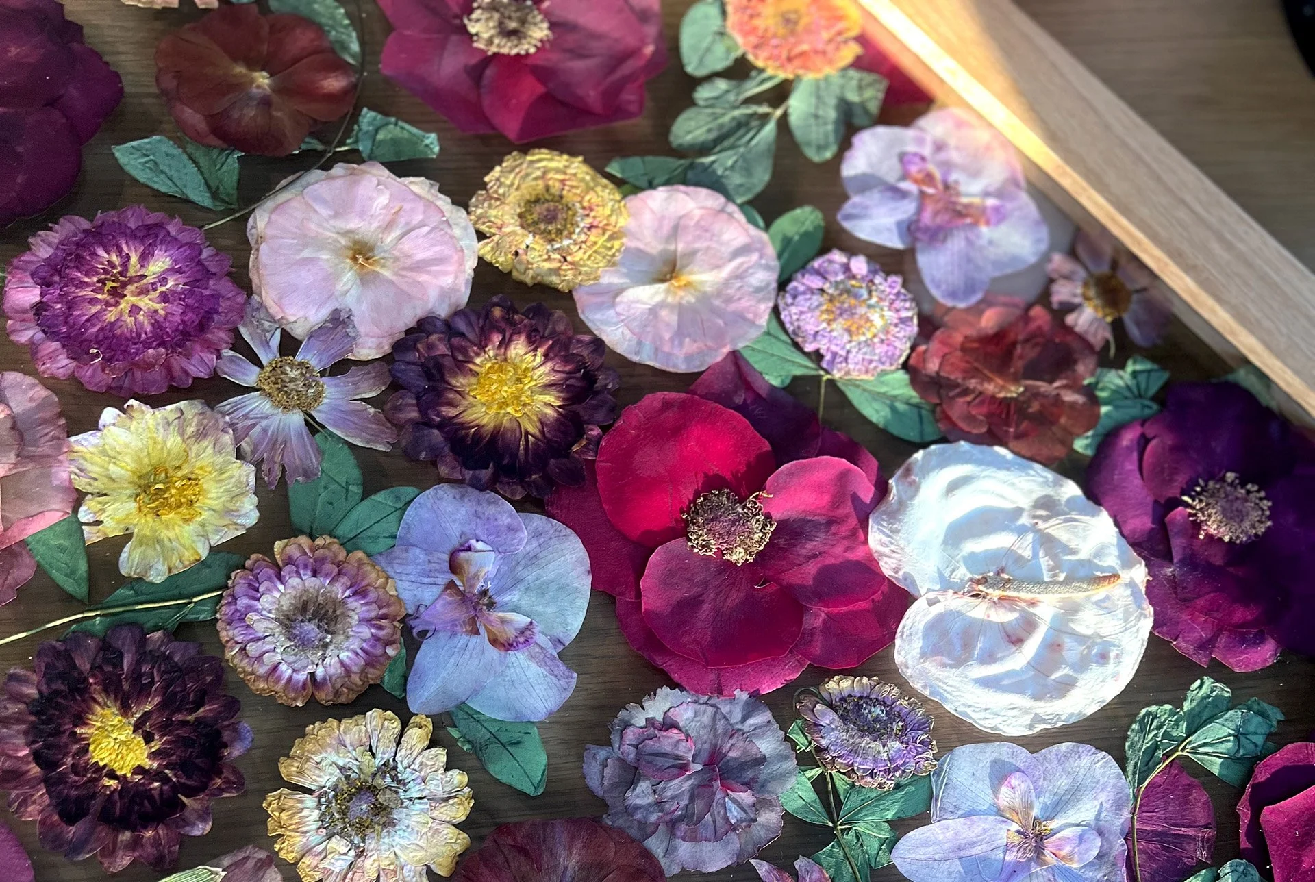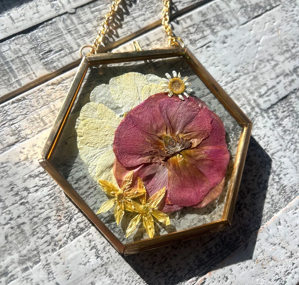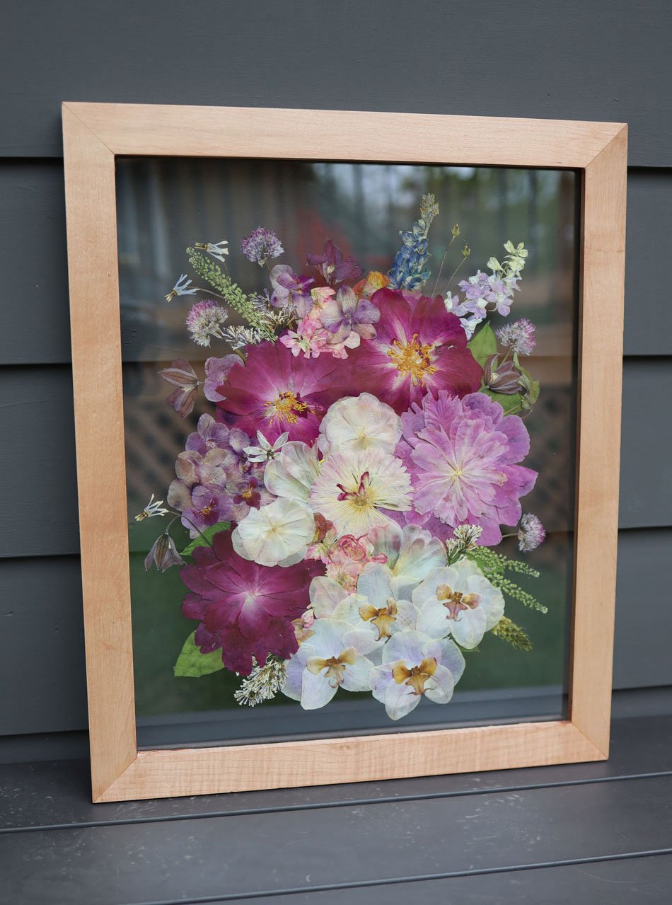 The most popular frame choice. These handmade custom frames are crafted from solid maple or oak wood to provide both timeless beauty and lasting durability. Each frame is designed with 99% UV-protective glass to help safeguard your florals. Available in 4 different sizes and designed to your preference.