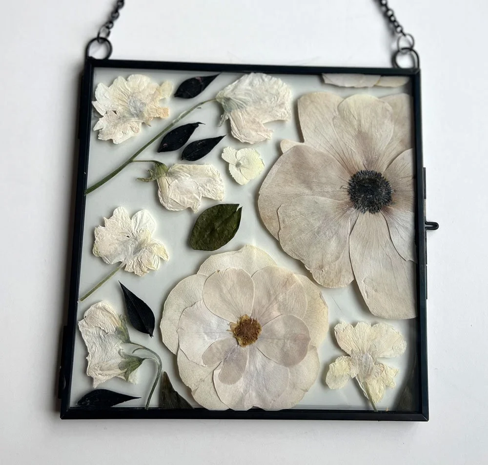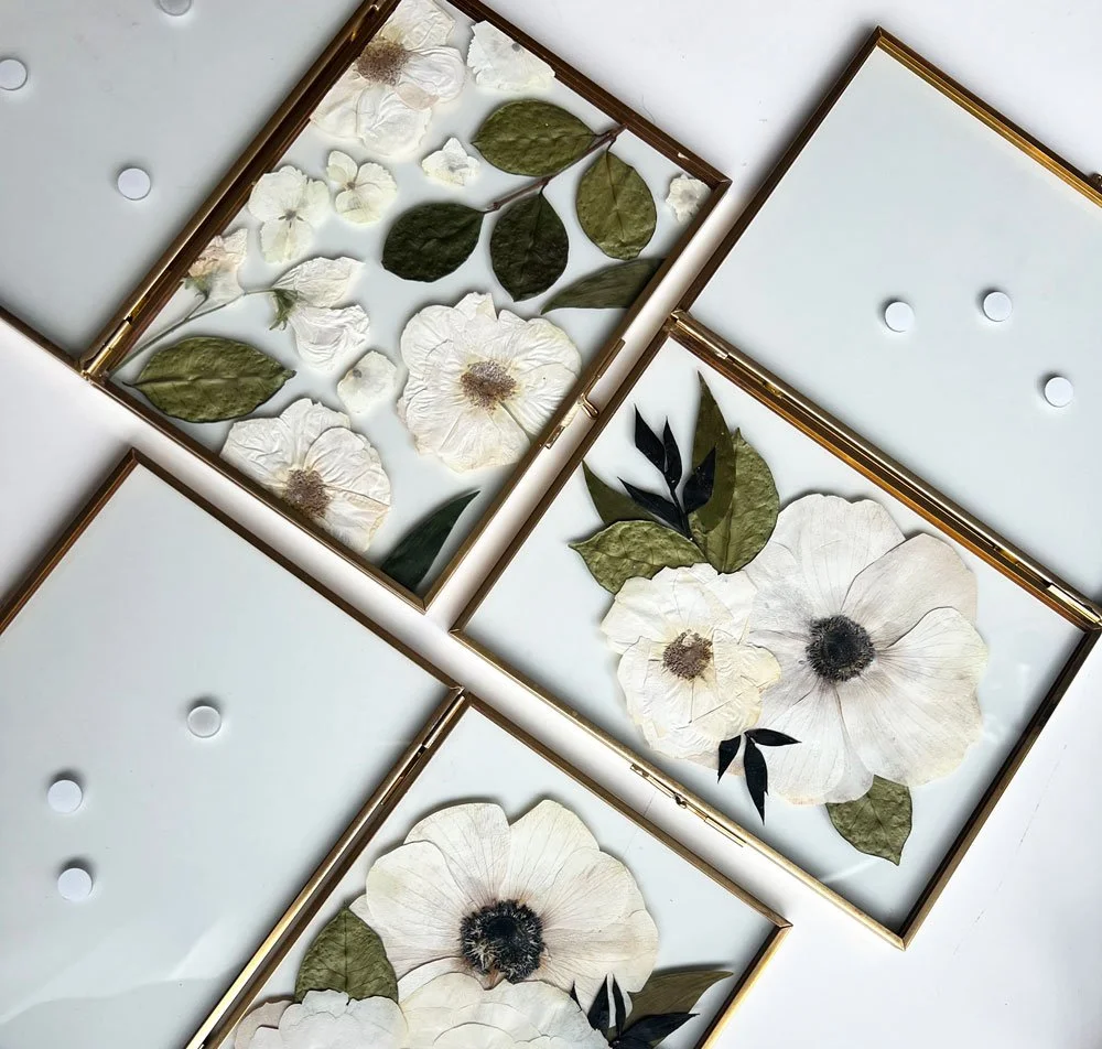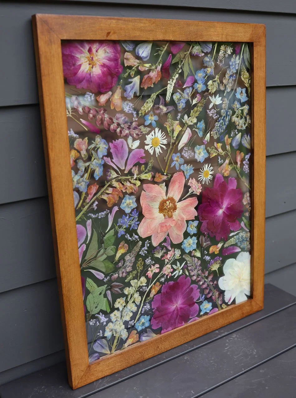 Available in light wood or dark wood, these frames present your pressed blooms in a soft, sophisticated form—beautifully showcasing their natural detail in an artful display. Options to add white, linen or black backings.